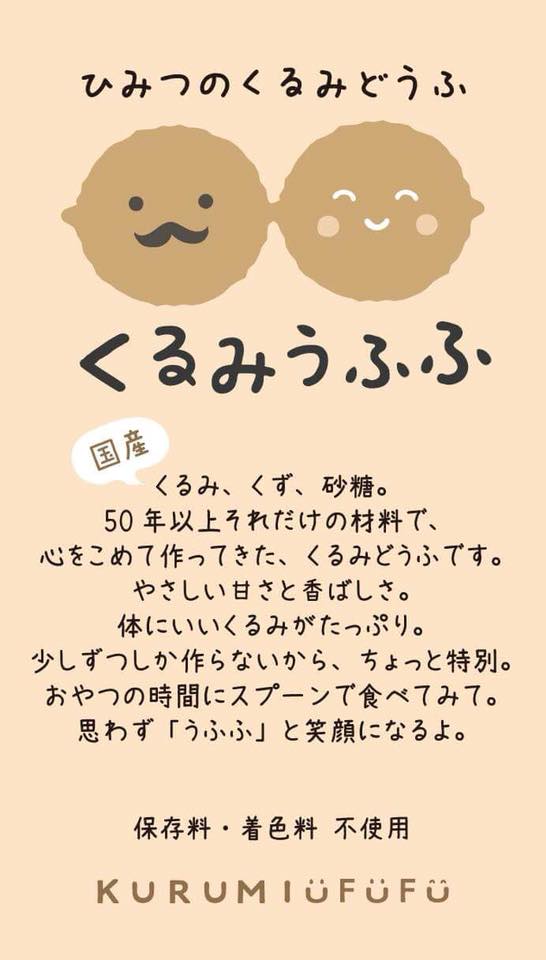 同じくおじいちゃんが作っていたくるみどうふから生まれた「くるみうふふ」、黒ごまのごまうふふなど、ファミリーは増殖中。イベントに出店するとあっという間に完売するなど、従来のごまどうふとは全く違ったイメージ作りに成功しています。