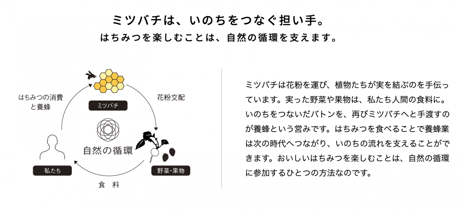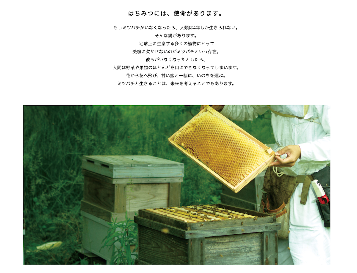 草野さんが養蜂に対して抱く使命や想いを、やわらかく誠実な言葉で伝えられるように心がけてコピーを作成。「はちみつを買って味わう=養蜂家を応援する=命の営みを未来へつなぐ」という流れを描き、たくさんの人々にはちみつ草野のファンになってもらうことをめざしました。
