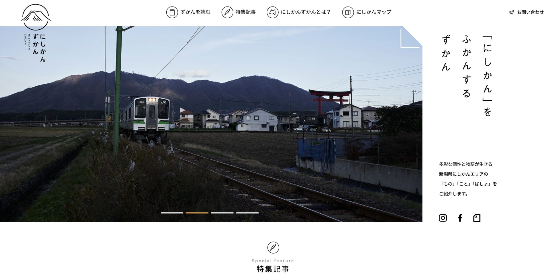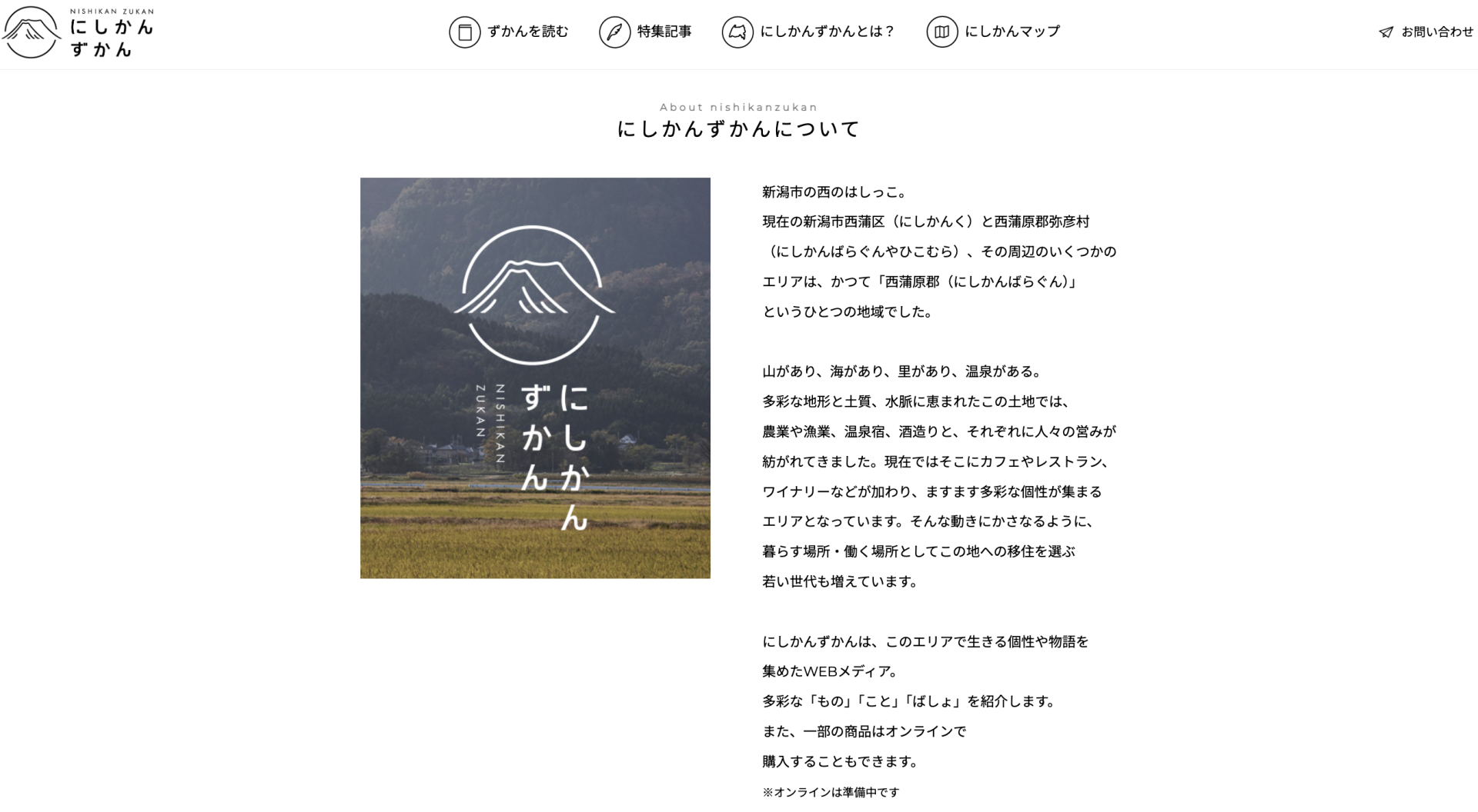 行政区の枠をゆるやかに飛び越えながら、西蒲区と弥彦村、さらにその周辺のエリアを「にしかん」とあらためて呼び直し、多様な地形・文化・産業が織りなす地域の豊かさをふかんしながら紹介する。その大いなる志のもと誕生したのが「にしかんずかん」というメディアです。