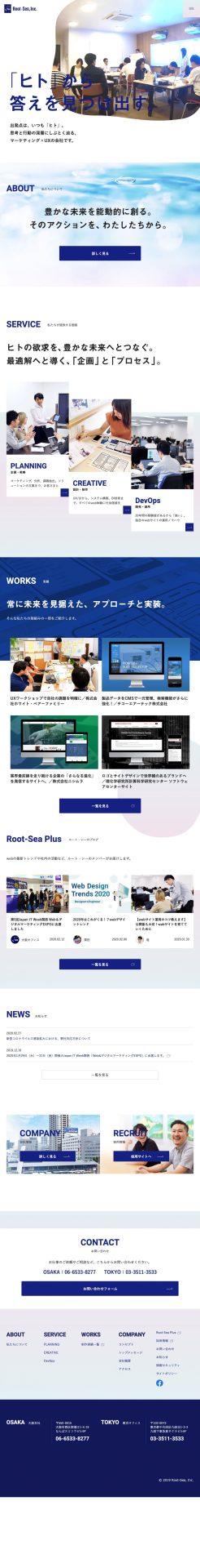 大阪市に本社を持つWEB制作会社「ルート・シー」。コーポレートサイトのリニューアルに際し、まず着手したのが会社の強みを整理すること。変化のスピードが特に速いWEB業界で設立20年を経過し、数多くのクライアントから選ばれ続けている最大の理由は、誠実に向き合い粘り強く答えを探す「人のチカラ」だと分析しました。すでにルート・シーが掲げていた「圧倒的ヒト志向」というビジョンに重ねることで、クライアントとユーザーのどちらとも真摯に向き合う姿勢を表現したキャッチコピーが生まれました。