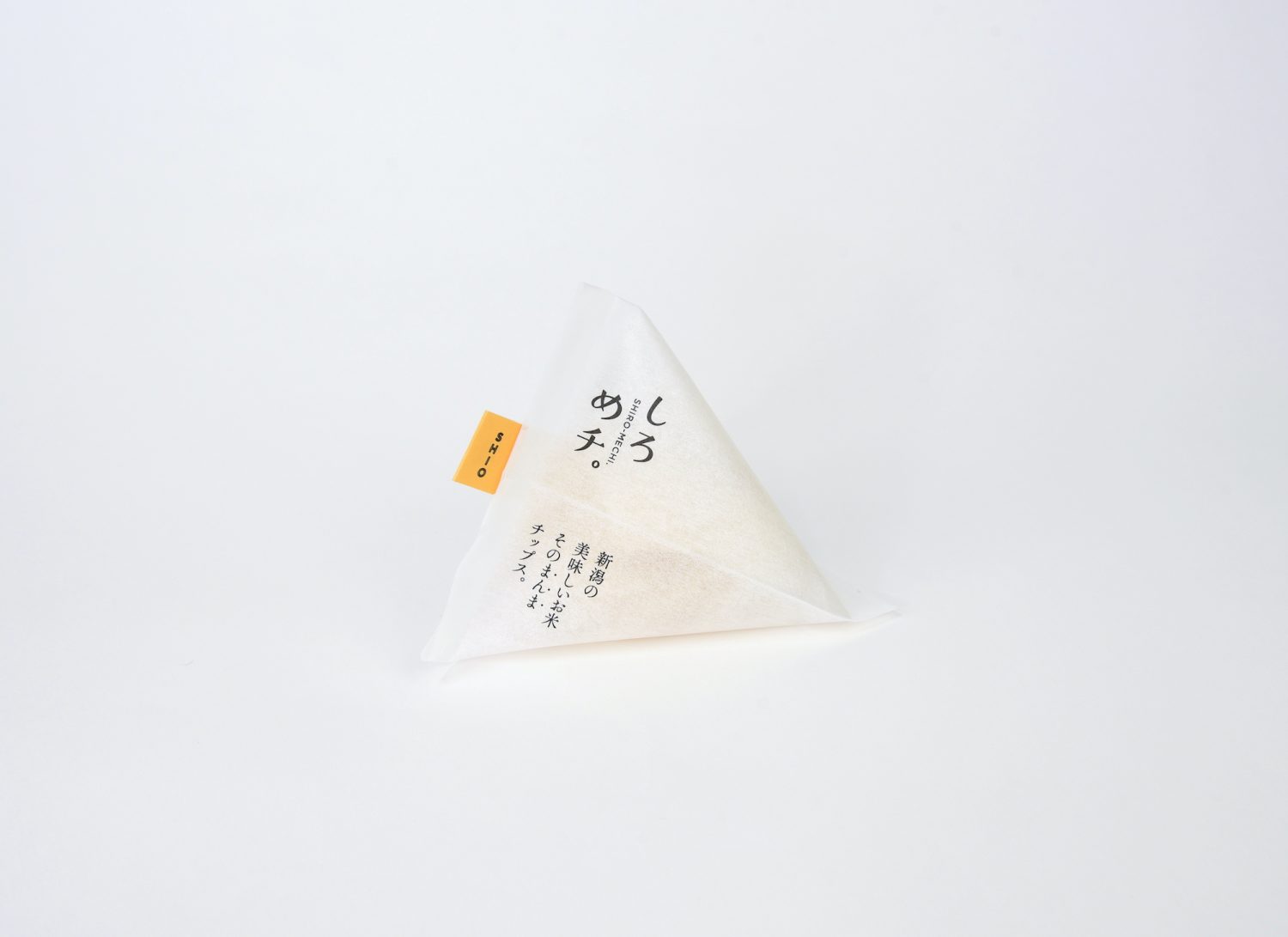 お米を半液体状にした「お米のピューレ」から、ジェラートや食パンなどを製造・販売しこめへんの商品です。お米のピューレを薄く伸ばして焼いた新食感のお菓子。覚えやすさや親しみやすさ、少しの遊び心を混ぜてネーミングを考案しました。着色料・添加物・保存料を一切使っていないピュアなイメージも、「しろ」というキーワードで表現しています。