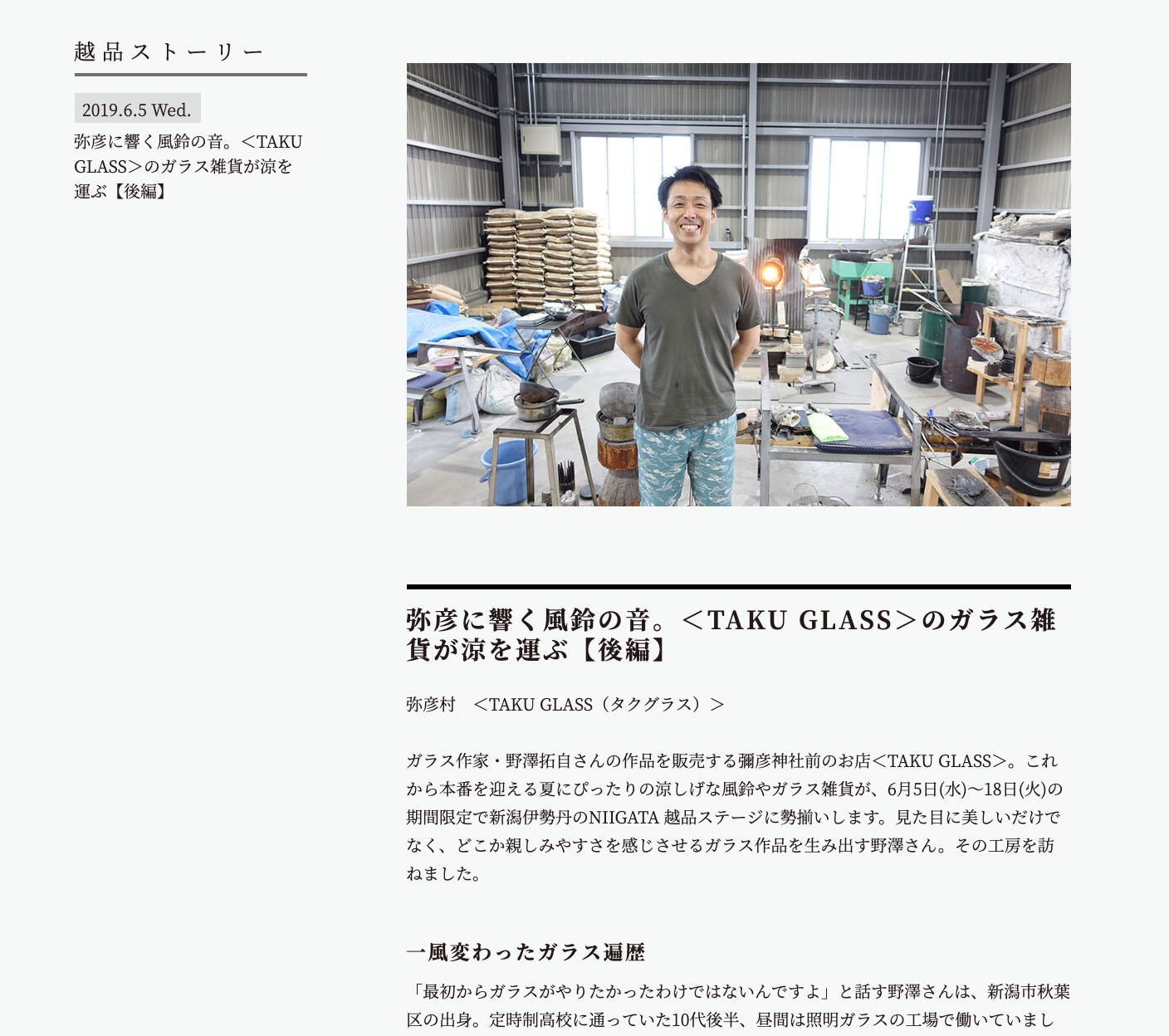越品ストーリー「TAKU GLASS(タクグラス)」