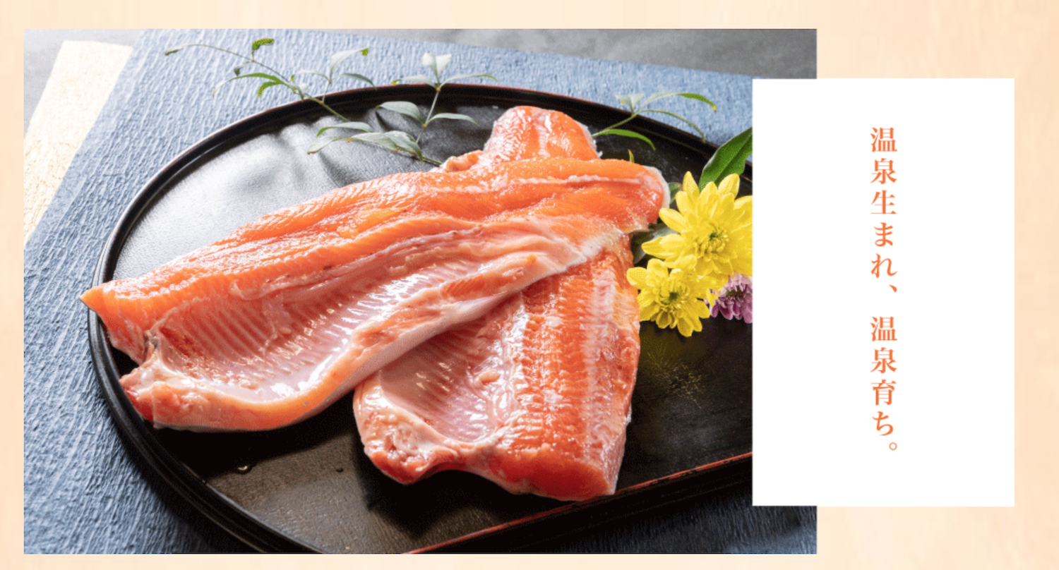 この豊かな温泉水により無投薬で養殖されたサーモン。「湯の宝」であり、「地域を豊かにする新たな資源」であることから「ゆたからサーモン」とネーミングしました。